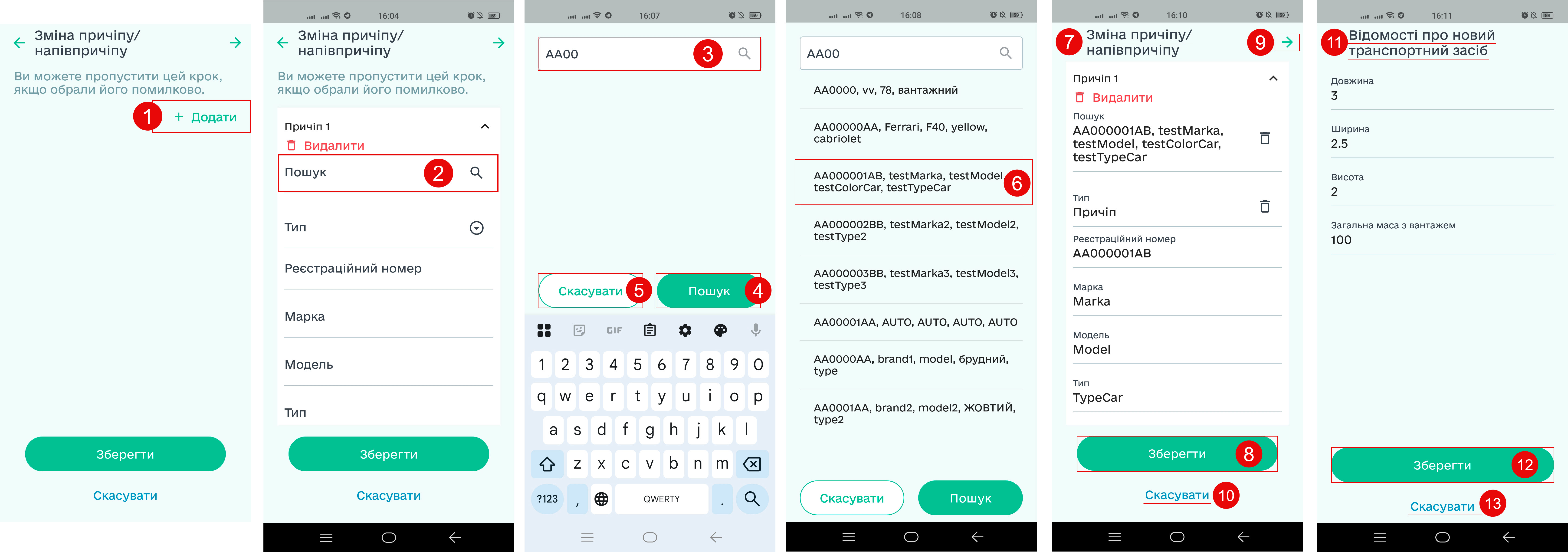 Для того, щоб додати причіп/напівпричіп у вікні «Заміна причіпу/напівпричіпу», виповніть наступні кроки (Зображення 5):