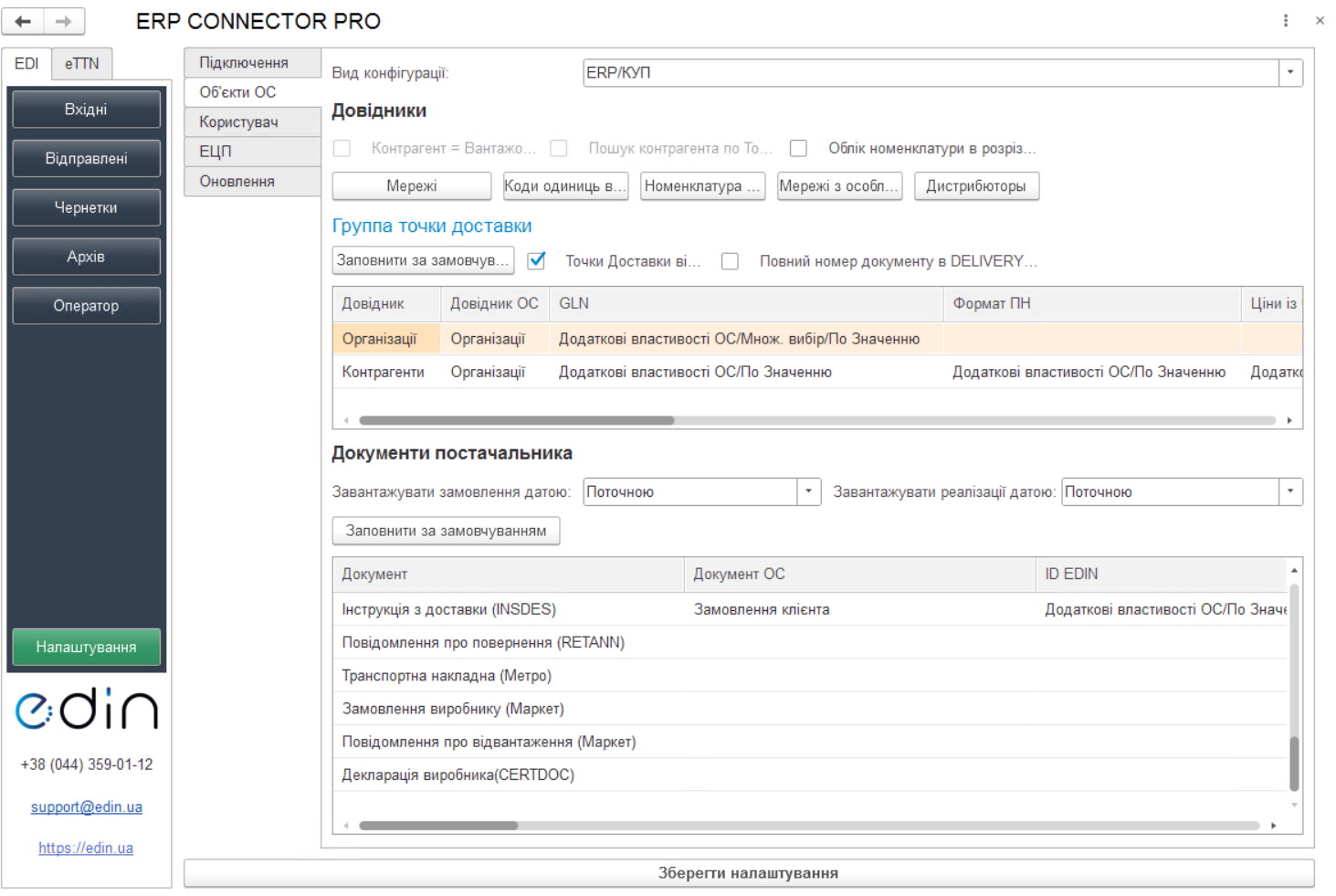 Після внесення необхідних налаштувань на всіх вкладках блоку «EDI» обов'язково збережіть зміни, натиснувши кнопку «Зберегти налаштування» (Зображення 1, Покажчик 3).