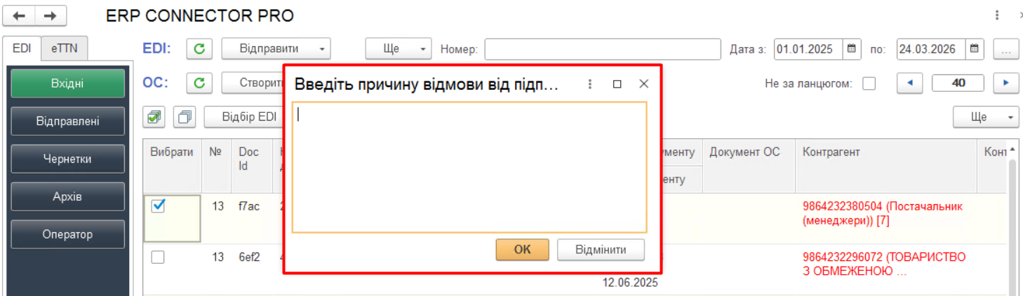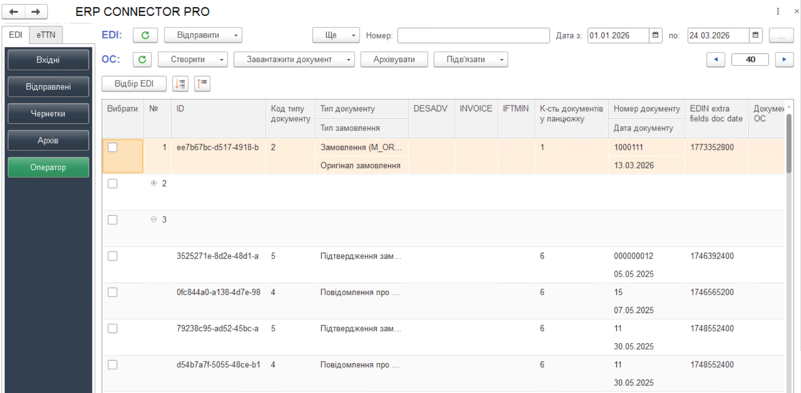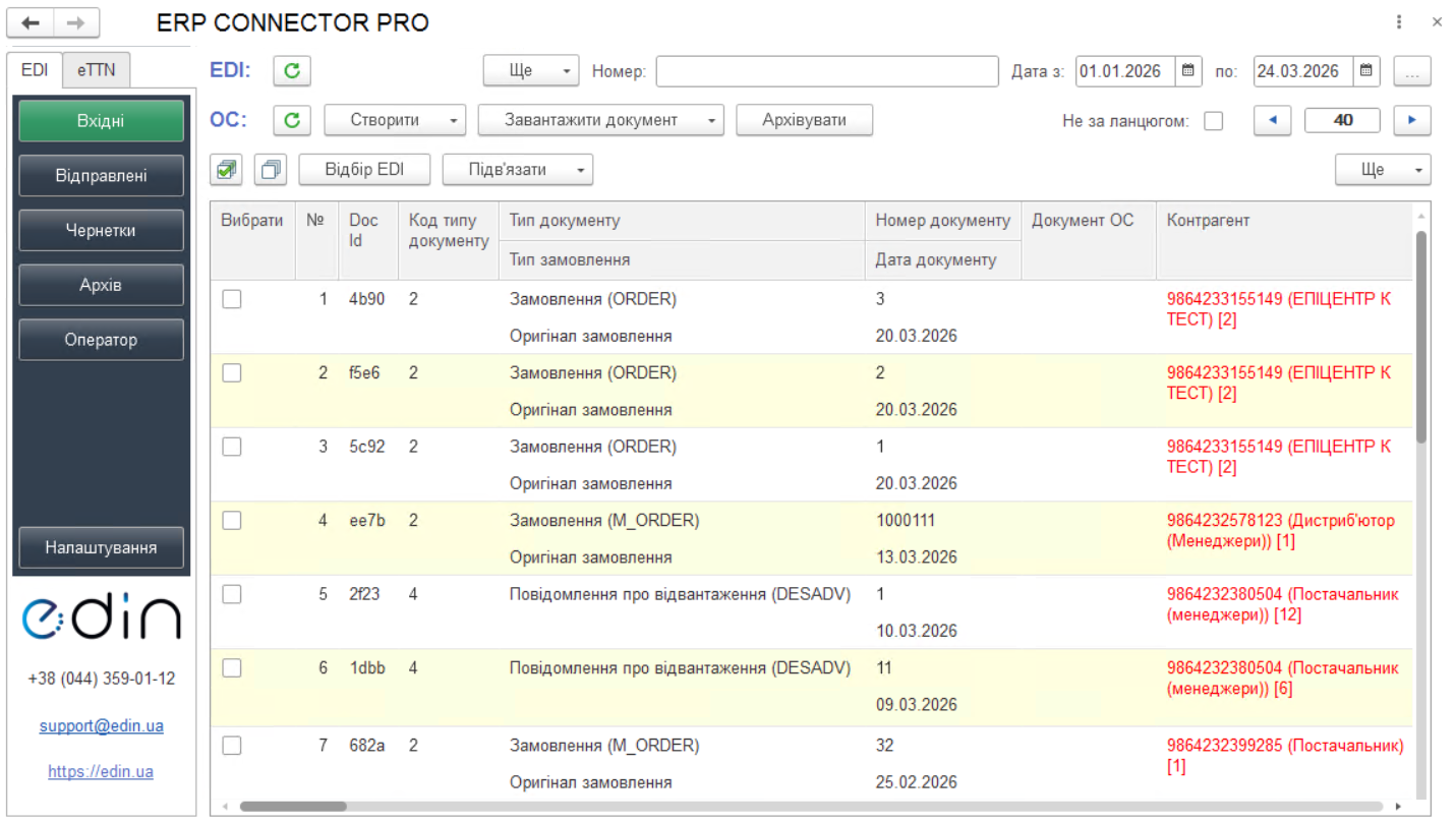 Зображення 1 - Розділ «Вхідні» блоку «EDI»