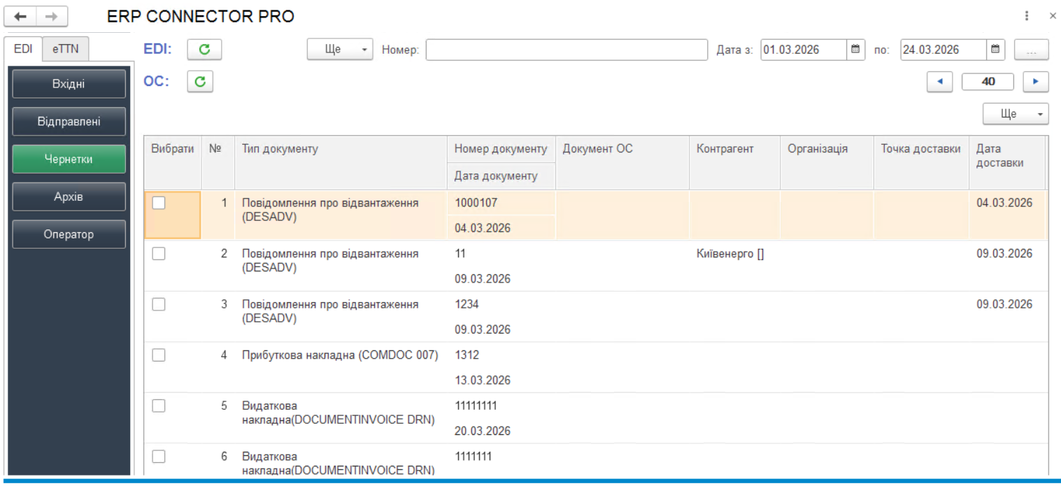 Зображення 7 - Розділ «Чернетки» блоку «EDI»