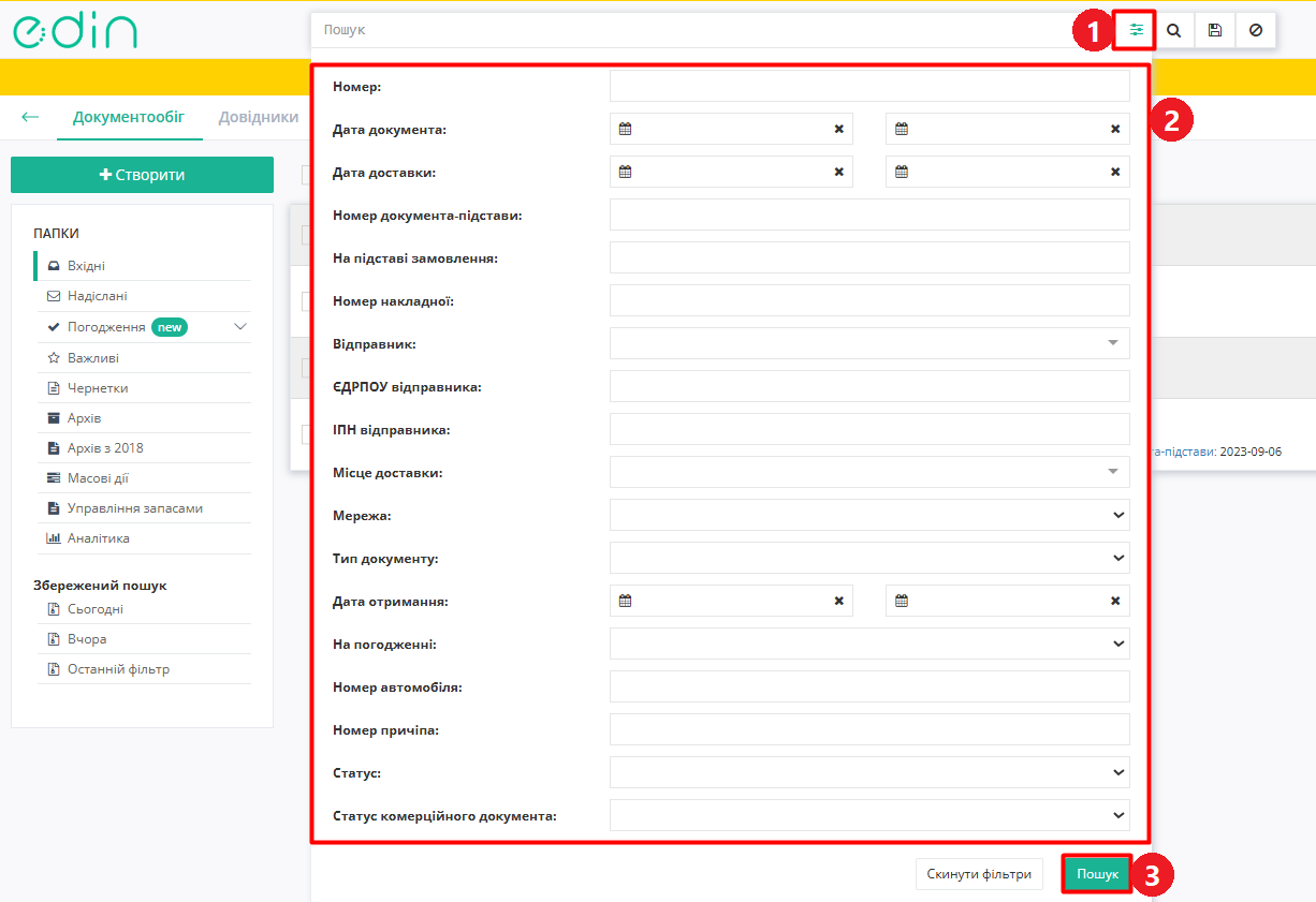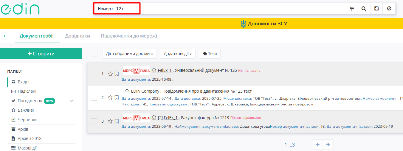 3. Пошук за номером документа