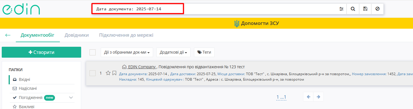 Зображення 14 - Пошук документа по GLN