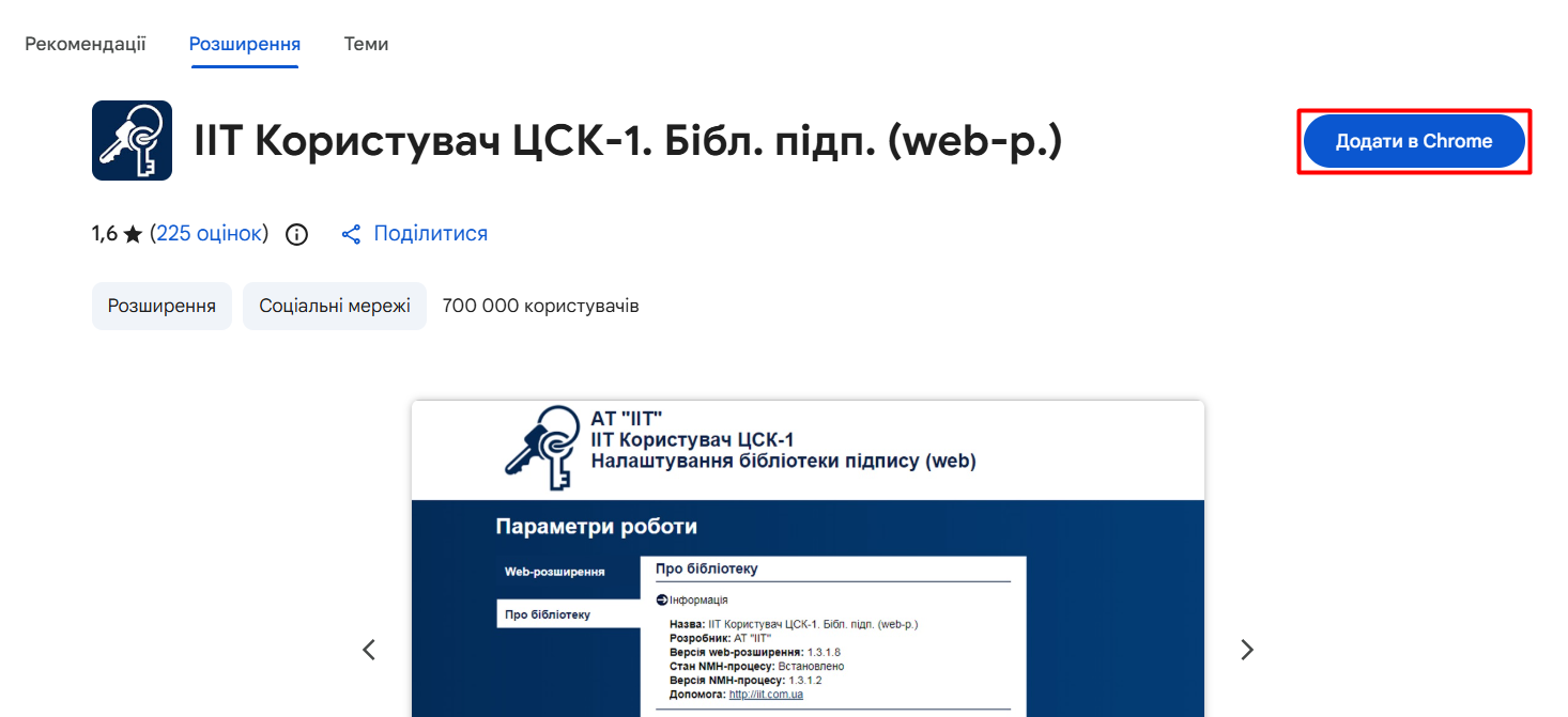 Зображення 1 - Сторінка розширення «ІІТ Користувач ЦСК-1. Бібліотека підпису (web-р.)» у веб-магазині Chrome -