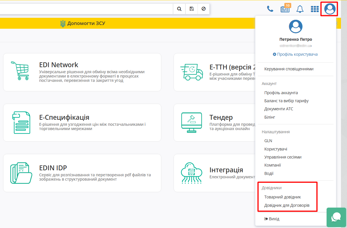 В сервісі «EDI Network» оберіть вкладку «Довідники» (Зображення 1).